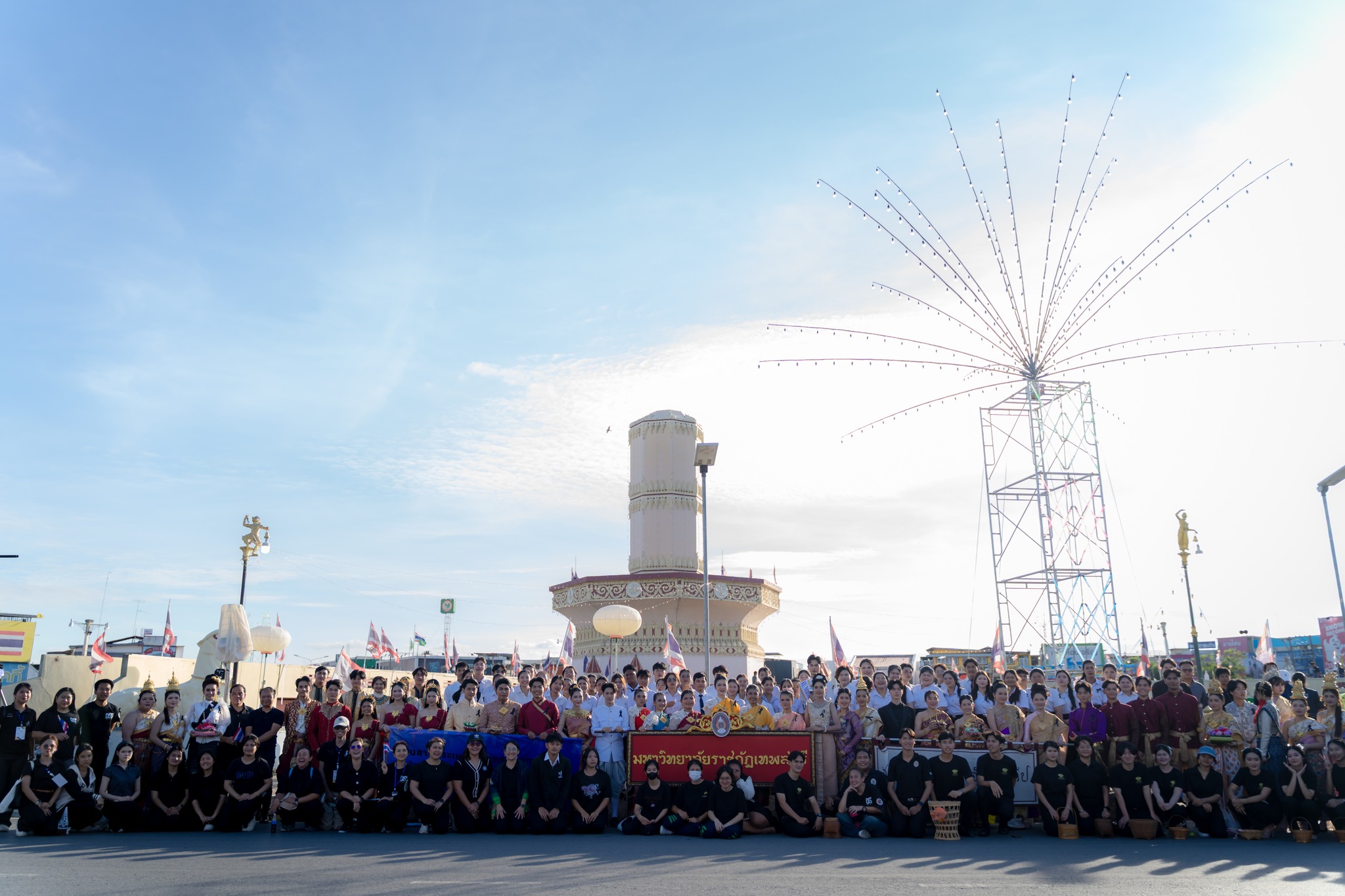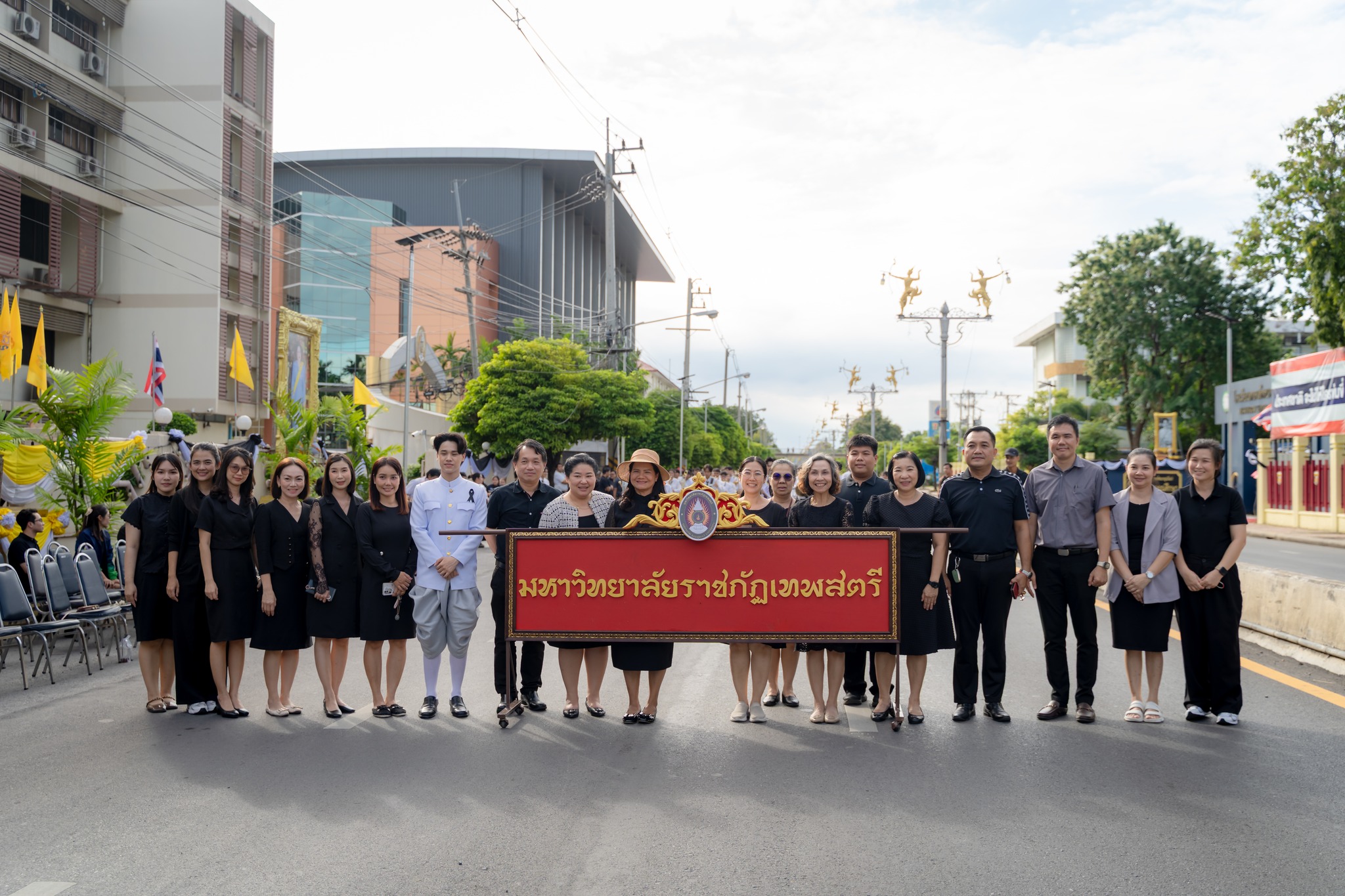 ผู้บริการ คณาจารย์ บุคลากร และนักศึกษาคณะเทคโนโลยีสารสนเทศ ร่วมให้กำลังใจ และร่วมเดินขบวนแห่กระทงของมหาวิทยาลัยราชภัฏเทพสตรี ในงานประเพณีลอยกระทงย้อนยุค ประจำปี 2568