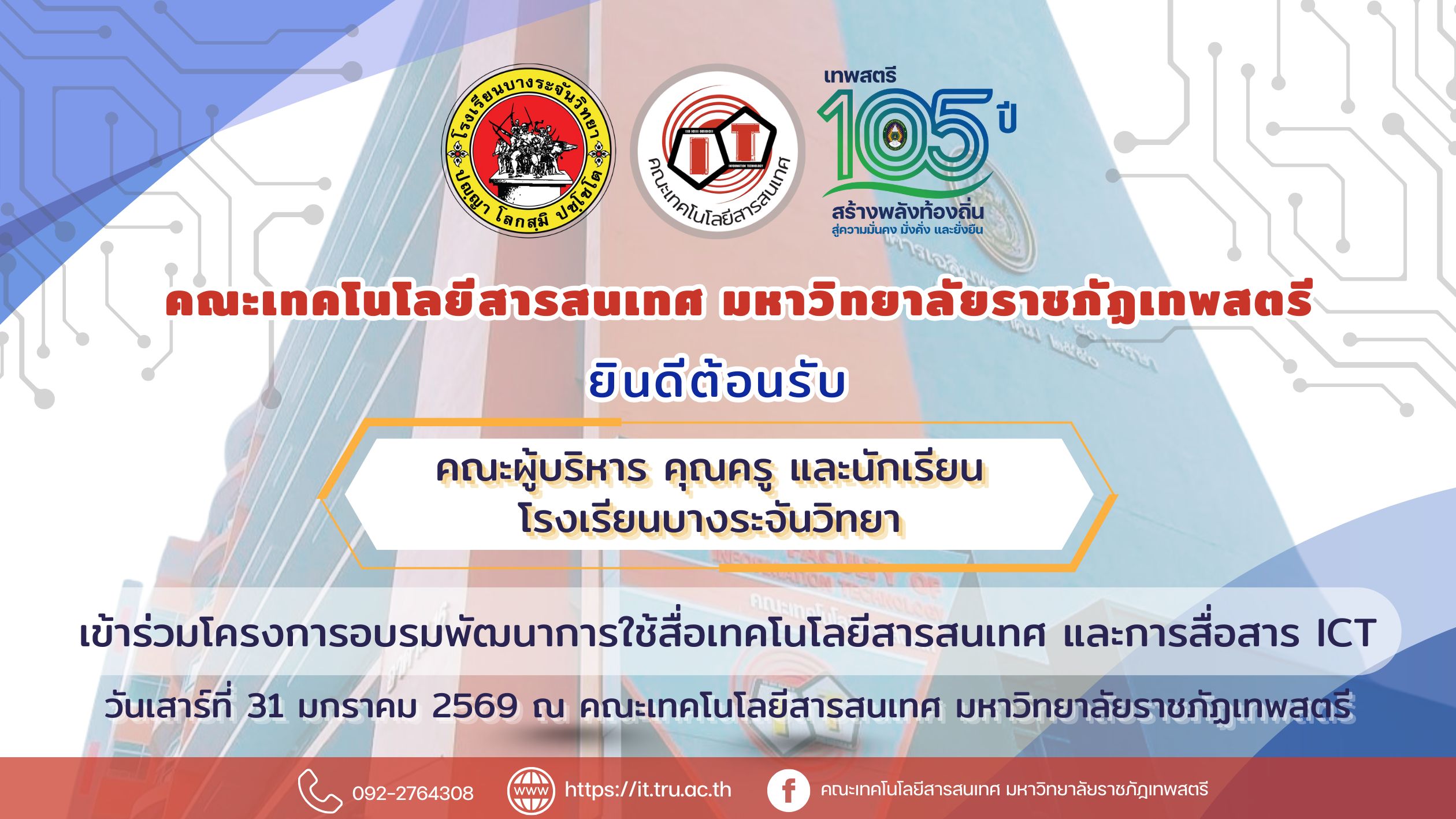 วันเสาร์ที่ 31 มกราคม 2569 ณ อาคาร 16 คณะเทคโนโลยีสารสนเทศ มหาวิทยาลัยราชภัฏเทพสตรี
